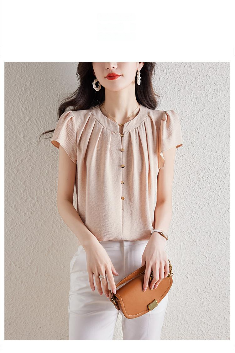 여성 통근 반팔 셔츠 슬림 라운드 반팔 셔츠 통근녀 반팔 셔츠
