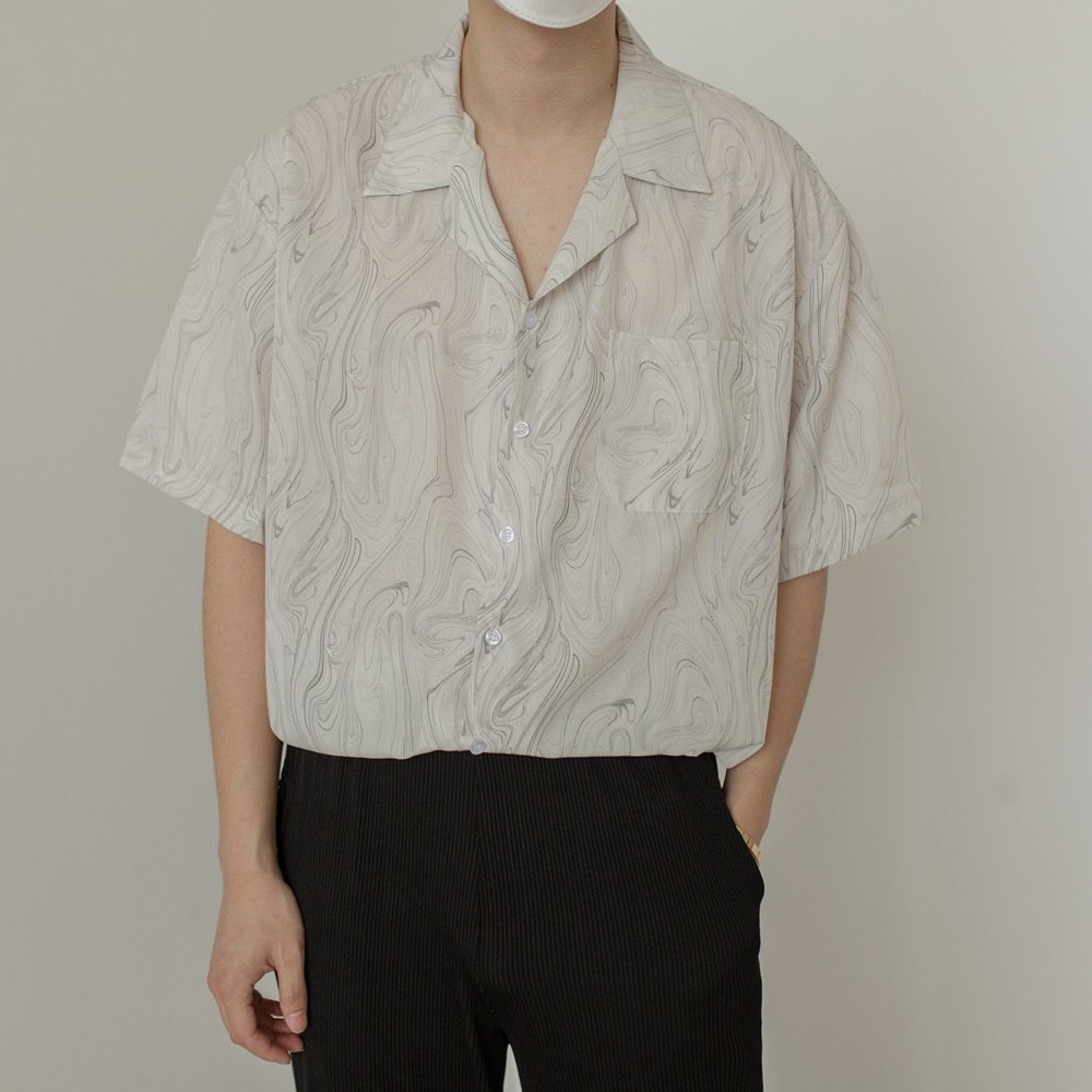 남자 빈티지 루즈핏 반팔 셔츠 커플 논스톱 실키 셔츠 잔꽃무늬 셔츠 남자 빈티지 반팔 셔츠 실키 박시 커플 셔츠
